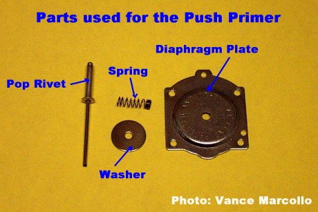 Note: here is a picture we received fromMike Masterson (California) who also built a push primer fro his carburetor. This device is even simpler and works great.