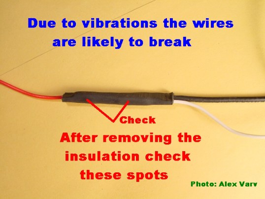 - bad connection (the red wire is broken under the insulation) remove