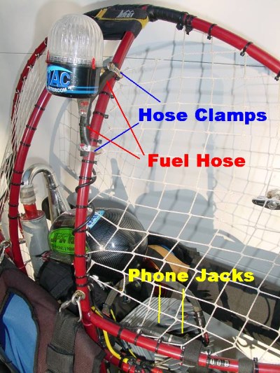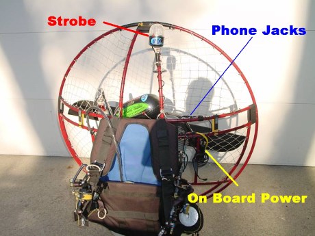 This connection allows me to disconnect the strobe and hook-up my battery tender (charger) if I do not use the paramotor for longer periods of time. The Tender will always keep the battery charged (especially in winter time)