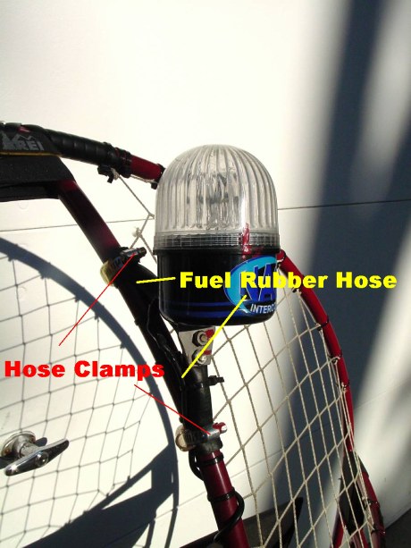 I followed Bruce Brown's method and I used an old fuel rubber line to fasten the strobe on the frame.