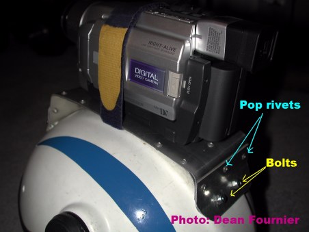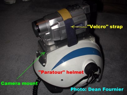 Here are a few photos of a mount I just built for my digital video camera. It is mounted on a Paratour helmet.